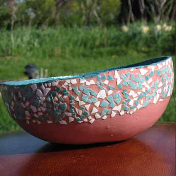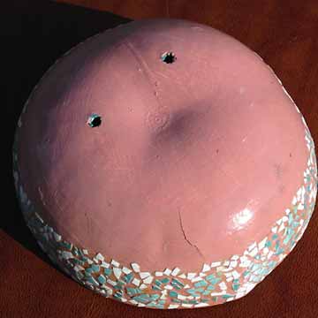 Small bowl gourd. Egg shell mosaic band around the top. |
